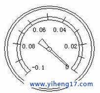 例二:表的示值為0.1,則P=1×105(1-0.1/0.1)= 0 Pa為**真空。