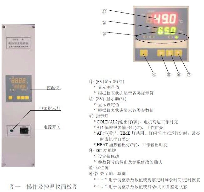 2.1 產(chǎn)品操作面板及控溫儀面板布置(見圖一);